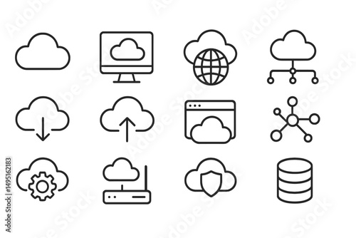 Wall mural : Modern vector illustration showcasing various cloud computing icons representing technology and conn