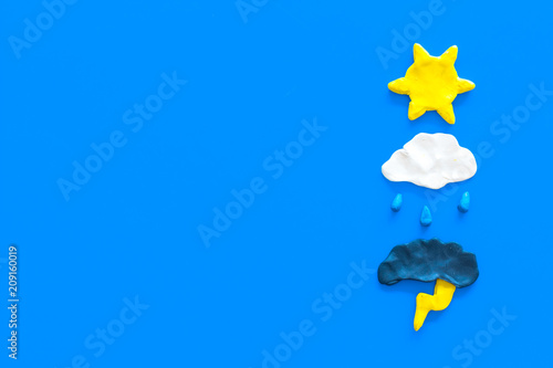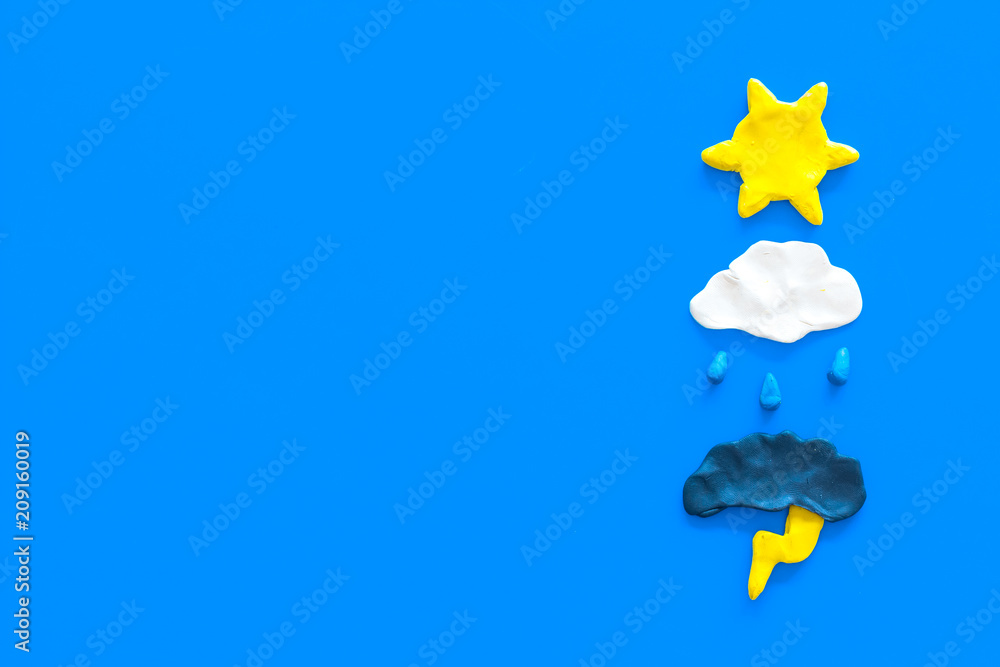 Wall mural modern weather icons set on blue background top view copy space - Wall murals Wall mural modern weather icons set on blue background top view copy space - Wall murals