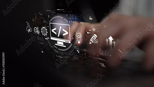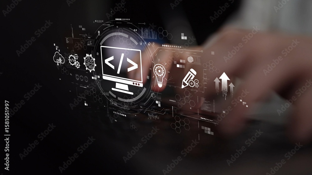 Wall mural modern web development concept featuring coding symbols, web development process, web development in - Wall murals Wall mural modern web development concept featuring coding symbols, web development process, web development in - Wall murals