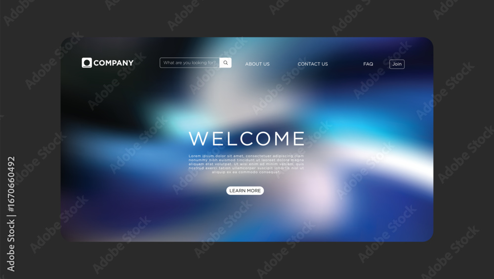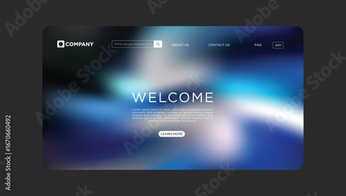 Wall mural : Modern website landing page design with abstract blue gradient and welcome message