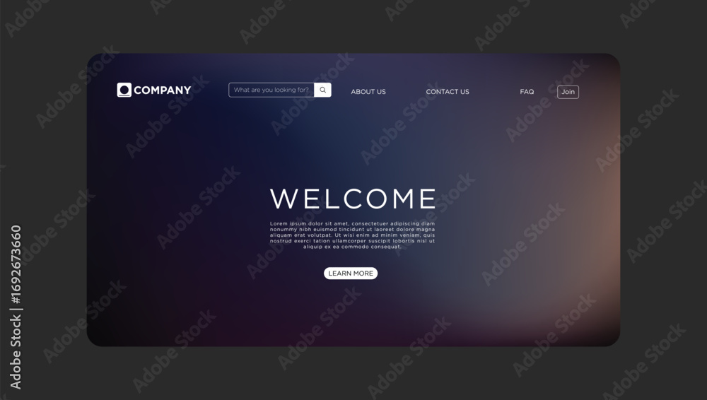 Wall mural : Modern website welcome page design with elegant gradient background and user-friendly interface