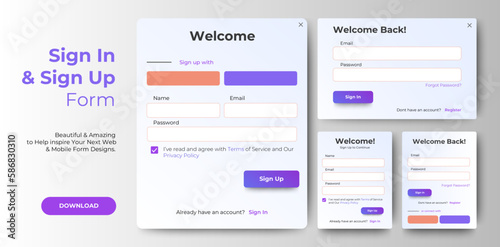 The watermark will not be included on Wall mural.: Modern white and clean login and registration form templates design - mobile sign up and sign in page