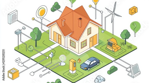 The watermark will not be included on Wall mural.: Modernized energy transmission network with smart home and sustainable infrastructure
