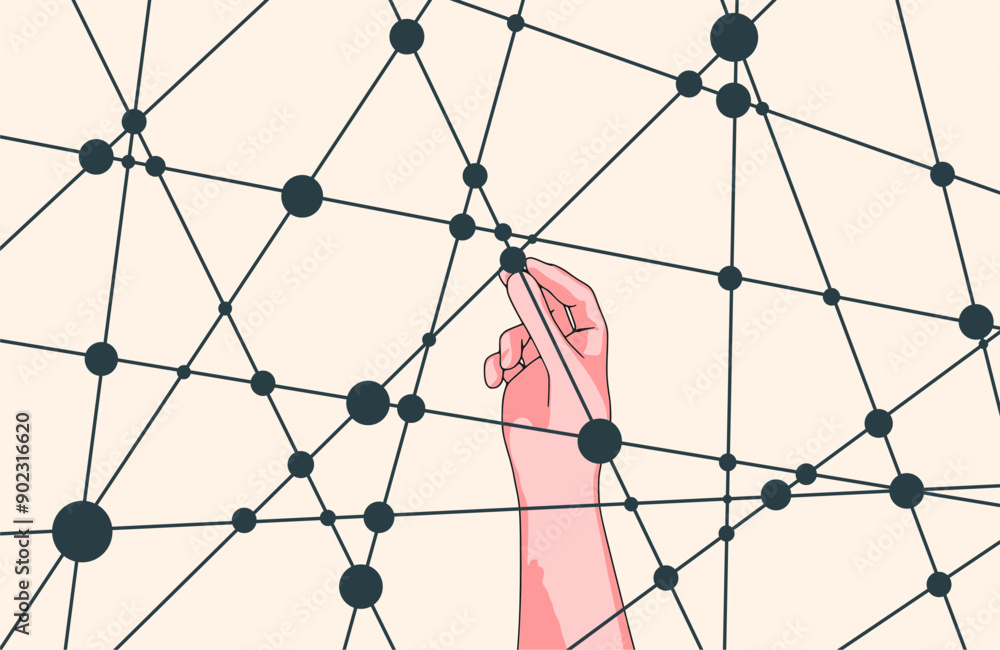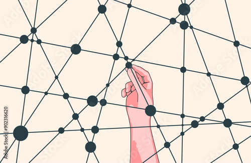 Wall mural molecule and communication background with adjusting hand. brochure or web banner design. lines and