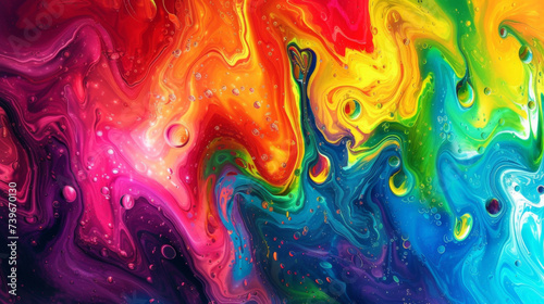 Wall mural : Molten rainbow chaos a chaotic and wild swirl of vibrant colors as blobs of liquid in every hue mix
