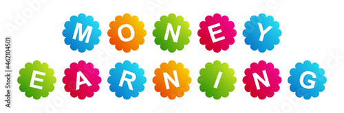 The watermark will not be included on Wall mural.: Money earning - text written on beautiful isolated colourful shapes with white background