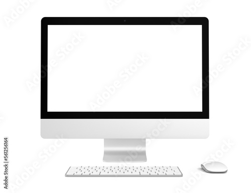 Wall mural : Monitor computer with keyboard and mouse - mockup isolated with transparent screen and background pn