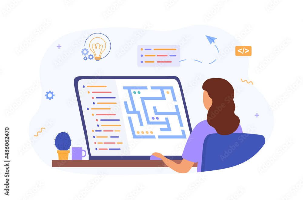 The watermark will not be included on Wall mural.: Monitor of graphic animator creating video game