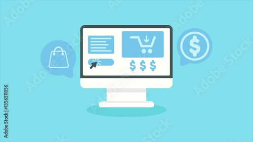 Monitor screen animation with shopping web display, make lots of money and business - loop animation Wall mural