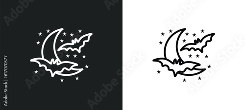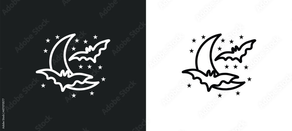 Moon and bats line icon in white and black colors - moon and bats flat vector icon from moon bats colWall mural