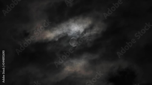 The watermark will not be included on Wall mural.: Moon behind dark clouds moving at night in real time