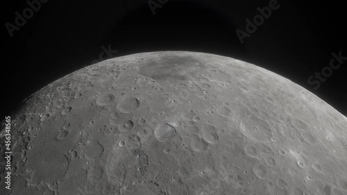 Wall mural : Moon in deep space - spaceship flies near moon - 3d model of moon