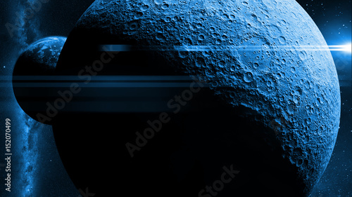 Wall mural moon in front of earth, sun and the milky way galaxy - Wall murals Wall mural moon in front of earth, sun and the milky way galaxy - Wall murals