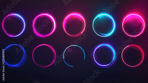 The watermark will not be included on Wall mural.: Moon or solar eclipse circles set isolated on black background - vector realistic illustration of neo