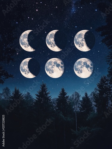 The watermark will not be included on Wall mural.: Moon phases night sky
