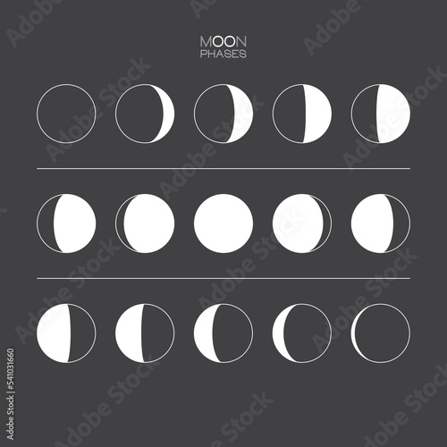 The watermark will not be included on Wall mural.: Moon phases scheme sphere shadow cycle astronomy icon set - vector illustration background