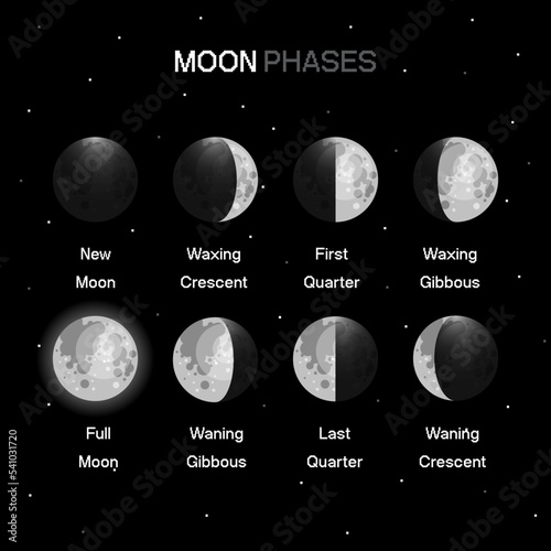Wall mural moon phases scheme sphere shadow cycle astronomy icon set. vector illustration background - Wall murals Wall mural moon phases scheme sphere shadow cycle astronomy icon set. vector illustration background - Wall murals