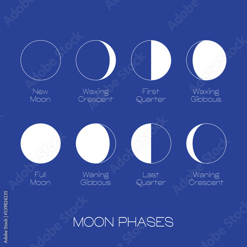The watermark will not be included on Wall mural.: Moon phases scheme sphere shadow cycle astronomy icon set - vector illustration background