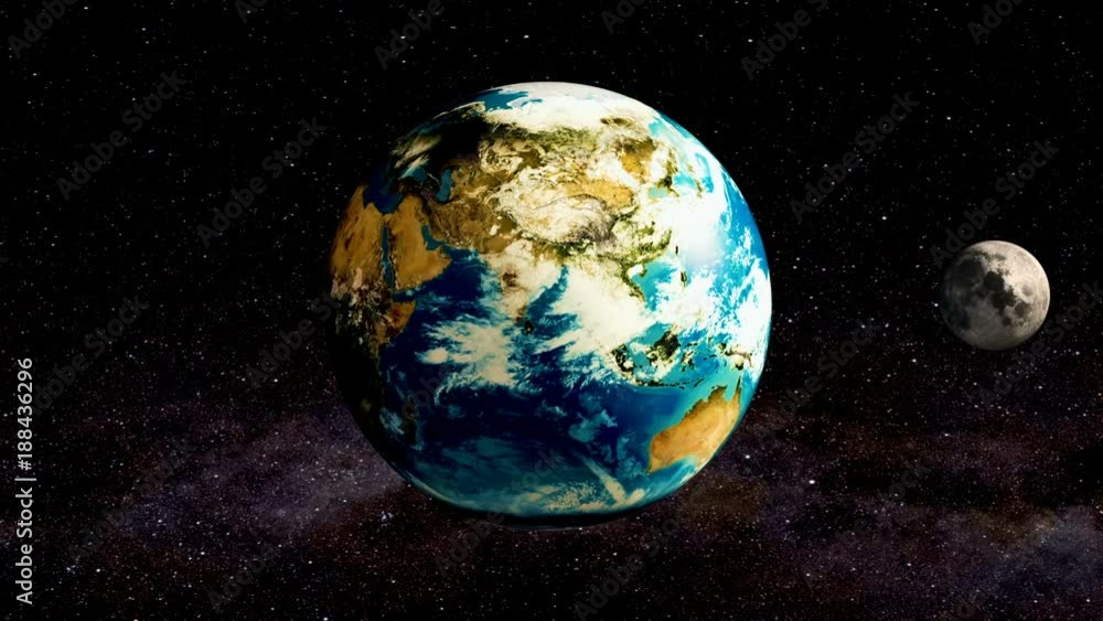 Wall mural : Moon rotation around the earth animation, 3d rendering