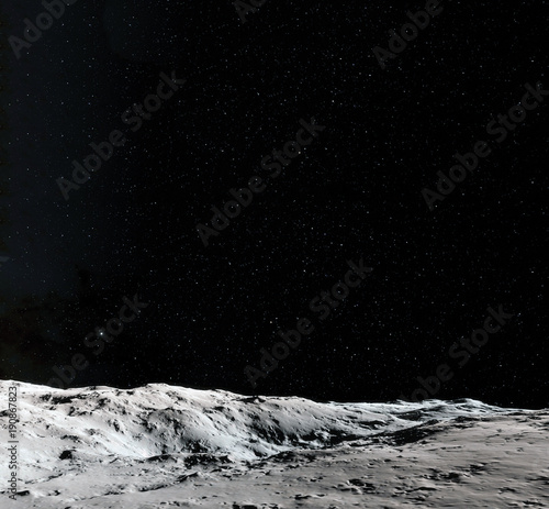 Wall mural : Moon surface - realistic 3d render of moon and space - space and planet - satellite - nebula - stars - ele