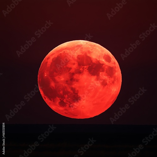The watermark will not be included on Wall mural.: Moonlight adventure with glowing red moon and peaceful environment high resolution picture