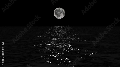 The watermark will not be included on Wall mural.: Moonlight path with low fool moon above the sea