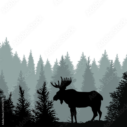 The watermark will not be included on Wall mural.: Moose in forest vector - moose illustration sign - moose scene symbol or logo -