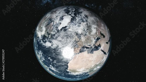 Wall mural motion graph planet earth model with illuminated mainlands on orbits around sun against milky way in