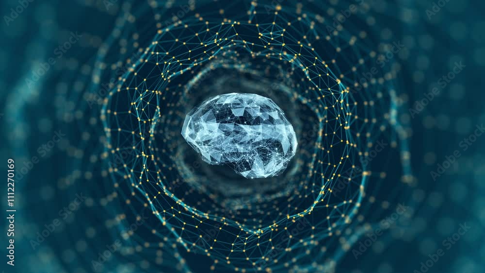 Wall mural motion graphic of blue digital brain logo and tunnel line connection with artificial intelligence an - Wall murals Wall mural motion graphic of blue digital brain logo and tunnel line connection with artificial intelligence an - Wall murals