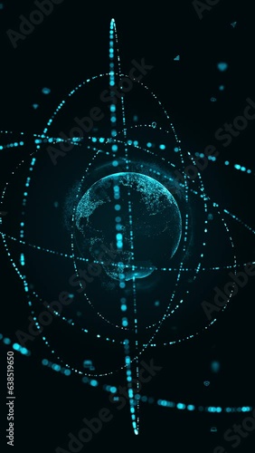 Wall mural motion graphic of blue digital earth sphere logo with particle ring circle rotation and earth sphere