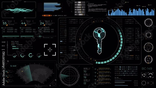 Wall mural motion graphic of blue digital security key with hud ui and circuit panel futuristic abstract backgr - Wall murals Wall mural motion graphic of blue digital security key with hud ui and circuit panel futuristic abstract backgr - Wall murals