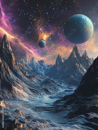The watermark will not be included on Wall mural.: Mountain range with planets