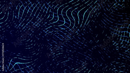 The watermark will not be included on Wall mural.: Moving neon swirling lines with wave warp effects patchwork glowing pattern design on a dark gradien