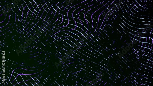 The watermark will not be included on Wall mural.: Moving neon swirling lines with wave warp effects patchwork glowing pattern design on a dark gradien