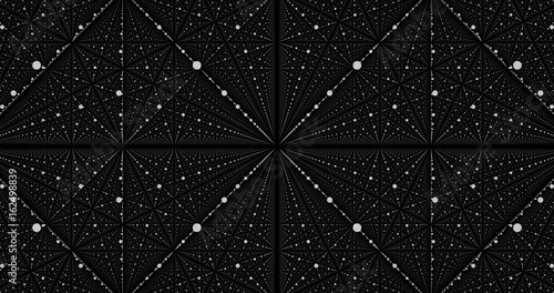 Wall mural moving through abstract fractal point matrix lattice. fly into geometric point structure. 4k infinit