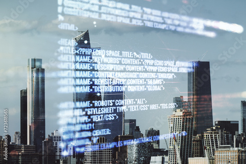 Wall mural multi exposure of abstract creative coding sketch on new york city skyline background, artificial in - Wall murals Wall mural multi exposure of abstract creative coding sketch on new york city skyline background, artificial in - Wall murals