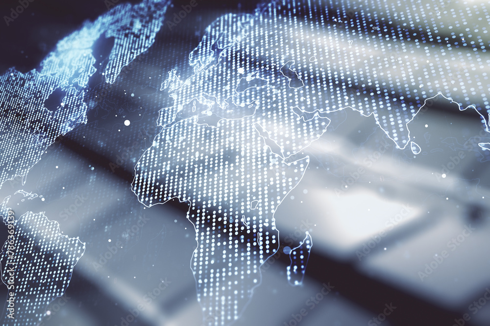 Wall mural multi exposure of abstract graphic world map on abstract metal background, big data and networking c - Wall murals Wall mural multi exposure of abstract graphic world map on abstract metal background, big data and networking c - Wall murals