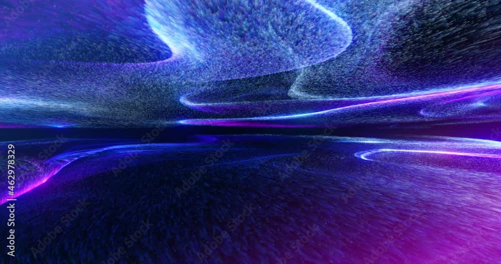 Wall mural : Multicolor shining aurora or energy waves with lights and particles flowing towards screen - psychede