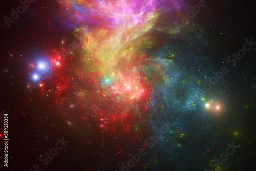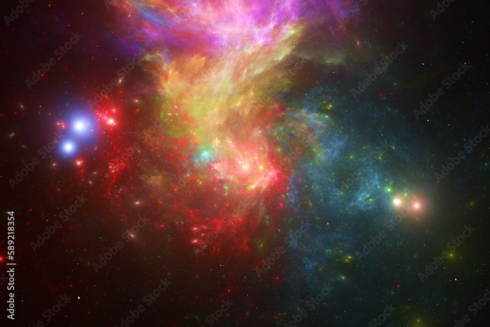 Multicolored clouds of stardust in black space - abstract fractal 3d renderingWall mural