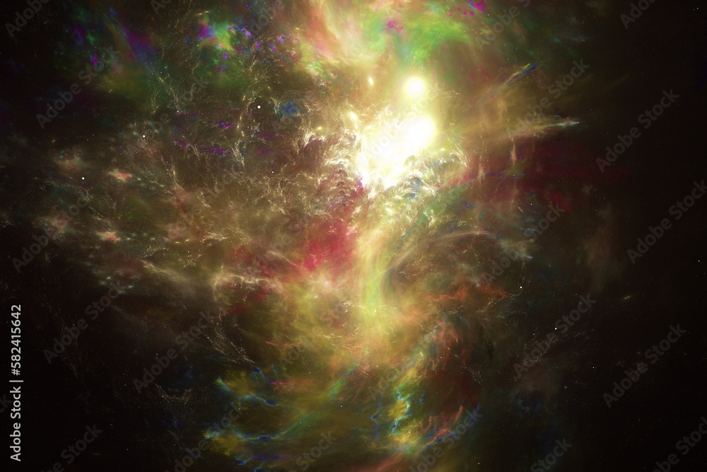 The watermark will not be included on Wall mural.: Multicolored stardust cloud in black space - abstract fractal 3d rendering