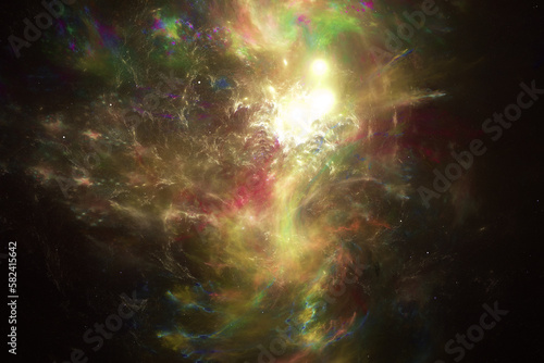 Multicolored stardust cloud in black space - abstract fractal 3d renderingWall mural