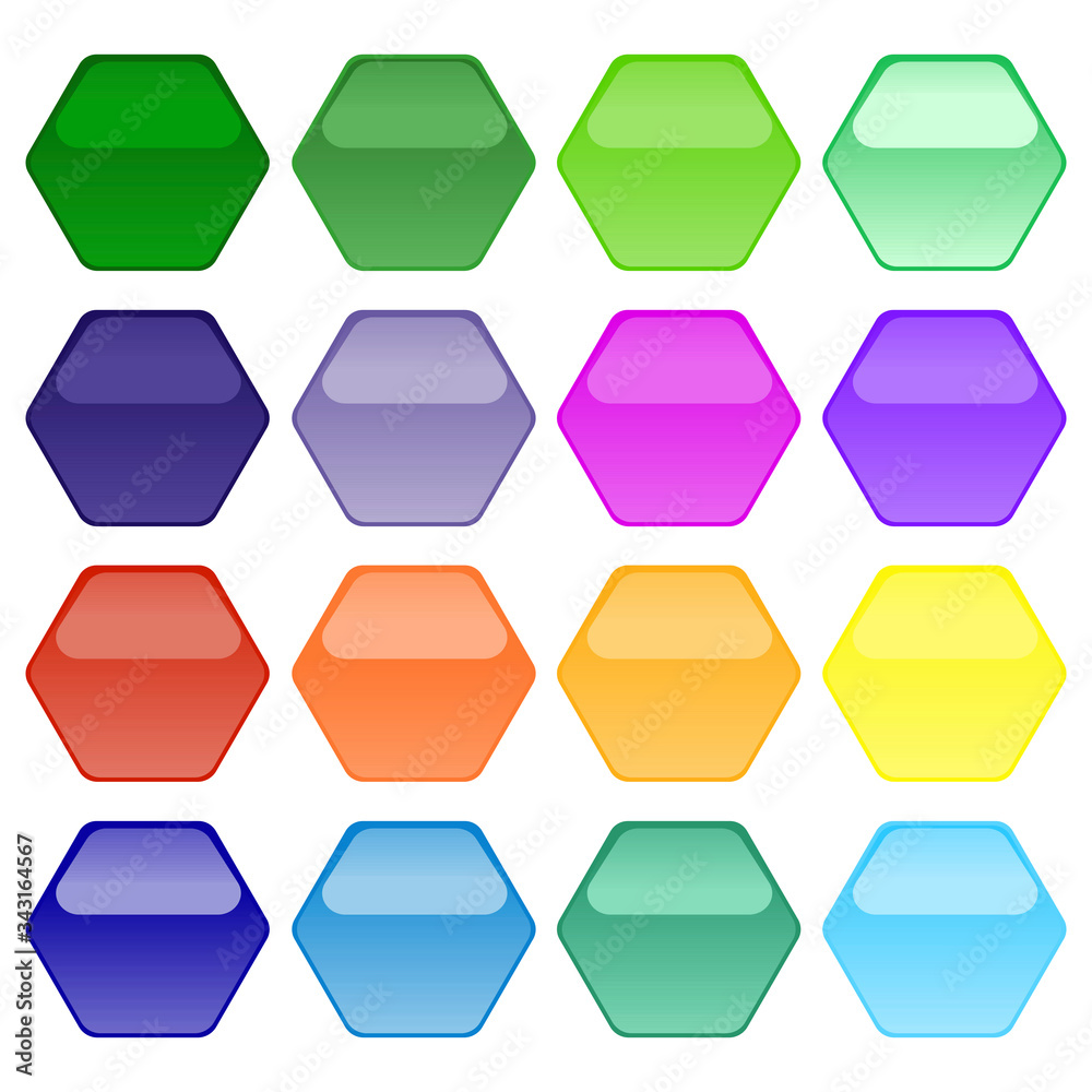 The watermark will not be included on Wall mural.: Multicolored volumetric buttons in the form of a hexagon in saturated color having a mirror effect -