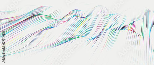 The watermark will not be included on Wall mural.: Multicolored wave of glowing dots - futuristic dot wave of bright particles on light background - weav