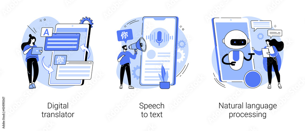 The watermark will not be included on Wall mural.: Multilingual mobile application abstract concept vector illustrations -