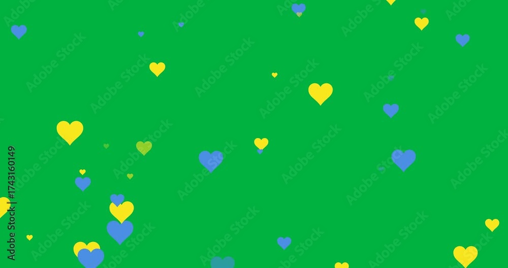 Wall mural multiple blue and yellow heart icons floating with copy space on transparent background