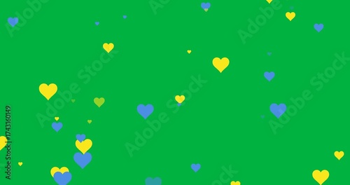 Wall mural : Multiple blue and yellow heart icons floating with copy space on transparent background