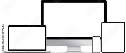 Wall mural : Multiple desktop devices with blank screen for responsive layout mockup