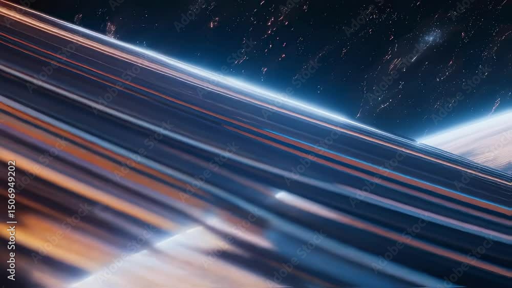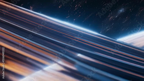Wall mural : Multiple glowing rings orbit a planet in deep space, creating a mesmerizing cosmic ballet of light a