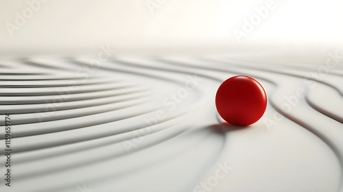 The watermark will not be included on Wall mural.: Multiple red clay paths converging into a single bright red circle on a smooth white surface, each p