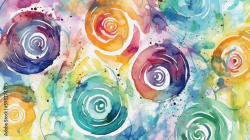 Multiple spirals abstract background in watercolor style - ai generative - Wall mural